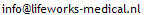 Lifeworks is een handelsonderneming die via internet medische apparatuur en medische applicaties aanbiedt aan zowel professionele als particuliere gebruikers. Ons doel hierbij is om het welzijn van mensen te verbeteren. Wij dragen bij aan oplossingen voor o.a. depressiviteit, slaapstoornissen, huidproblemen, gewrichtspijn, spierklachten, hooikoorts, transpiratieproblemen etc. Daarnaast zijn wij continu bezig met het zoeken naar nieuwe medische apparatuur en applicaties om nóg meer oplossingen te kunnen aanbieden.